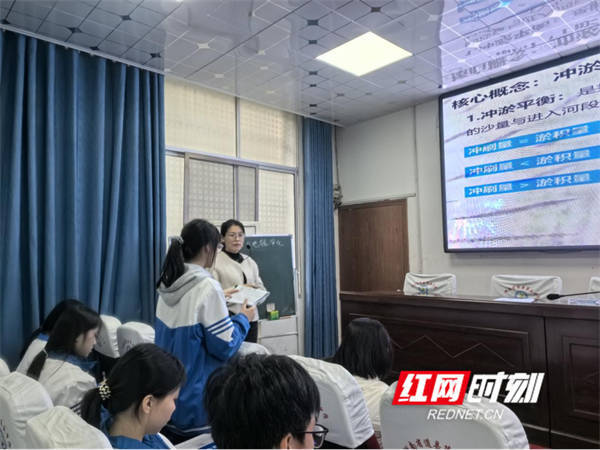 在示范课环节,地理学科由道县五中唐湘桂老师带来二轮复习示范课,生物学科则由株洲二中钟耀老师执教《项目式情景真题的逻辑链分析》示范课。两位教师紧扣新高考命题趋势,以扎实的专业功底和精巧的教学设计,呈现了两堂高水平的复习课,赢得了参训教师的一致好评。课后,参训教师围绕示范课进行了深入点评,大家畅所欲言,既肯定了课堂亮点,也提出了中肯建议,现场研讨氛围浓厚。